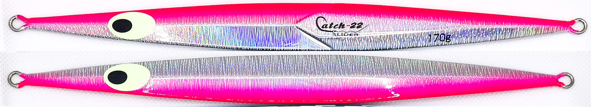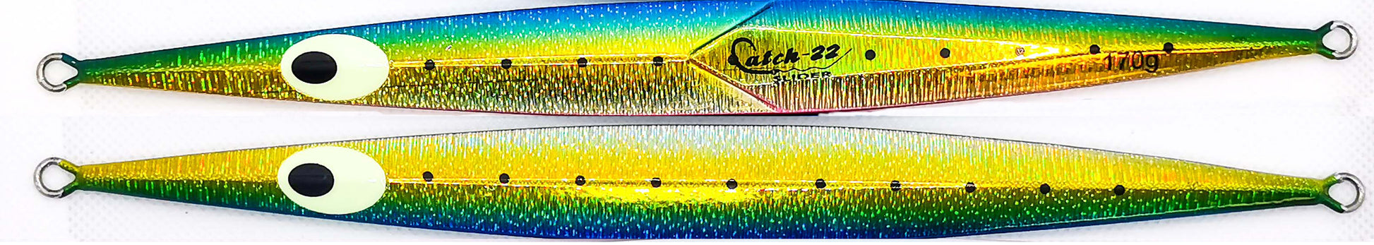 Jig para pesca vertical de 170gr, ideal para situaciones de profundidad de 100 a 200ft y/o corrientes fuertes. De bajada rápida con la versatilidad de poder pescar en modalidad lenta, media o rápida. Su forma afilada proporciona una ventaja hidrodinámica, una menor resistencia tanto al bajar y más importante aún al subir, reduciendo el esfuerzo del pescador durante la acción del jigging. Súper efectivo!